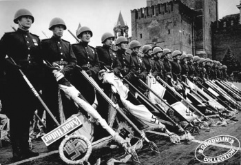 "Наше дело правое! Враг будет разбит! Победа будет за нами!" |