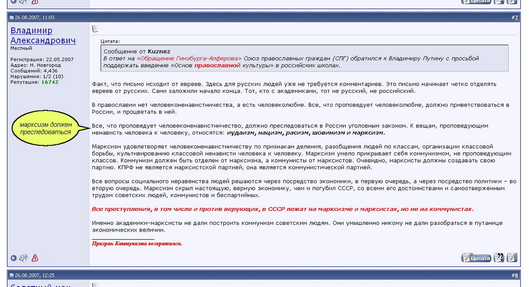 Вместе опрос проводили,потом на местном сайте кпрф результаты вывешивали,Прес-конференцию для сми делали вместе. В жизни коммунисты имеют такие же позиции как и члены "Суть времени" Лишь здесь ,на этом форуме,некоторые товарищи с рейтингом за 1000 призывают бойкотировать выборы(ставя палки в колёса Зюганову),приветствуют Медведевские высказывания насчёт марксизма(марксизм-это экстремизм).Складывается впечатление,что именно этот форум служит для слива левых идей. (Факты могу привести) |