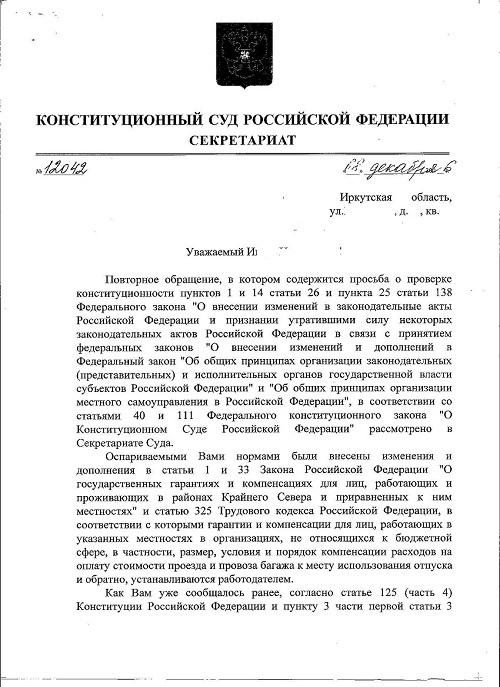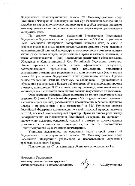 Теперь по поводу законов и Конституции, конституционного суда и правоохранительной системы. Эта система создана прежде всего для охраны интересов созданной ещё и при Ельцине элиты. Под это заточено все... Интересы простого народа эту систему-матрицу не волнуют и о них просто красиво говорят как Путин, так и его головастый дружбан. Яркий пример из череды тысячи подобных примеров: Путин, как презитдент подписывал законы, принятые ГД РФ. Что же он не смотрит что подписывает? Все он прекрасно видит. Итак, вот мнение одного адвоката, которые действительно соответствуют фактам - сам проверил... Все так... 01.01.2005 г. вступил в законную силу подписанный мистером Путиным Федеральный Закон № 122-ФЗ от 22 августа 2004 г. Рассмотрим, что этитм одобрил Путин... Была одинокая жалоба простого гражданина нашей страны о признании п.п. 1), 14) ст. 26, п. 25) ст. 138 Федерального Закона № 122-ФЗ от 22 августа 2004 г. и соответствующих этим положениям: статью 325 Трудового кодекса Российской Федерации и ст. 33 Закона РФ № 4520-1 от 19.02.1993 г. «О государственных гарантиях и компенсациях для лиц, работающих и проживающих в районах Крайнего Севера и приравненных к ним местностях» несоответствующими Конституции Российской Федерации в части нарушений конституционных прав лиц, работающих в организациях, не относящихся к бюджетной сфере. Вкратце суть данной жалобы в том, что представительская государственная власть России в лице парламентского большинства политической партии «Единая Россия» фактически и юридически лишила возможности людей, занятых во внебюджетной сфере (рабочие и управленцы приватизированных заводов и т.д.) реализовать свои права, предусмотренные Конституцией России, на ежегодный отдых. То есть право бесплатного проезда и провоза багажа к месту отдыха и обратно теперь на прямую с 01.01.2005 г. (дата вступления в юридическую силу оспариваемого закона) зависит от воли самих работодателей, что подразумевает под собой право работодателя установить ежегодную компенсацию оплаты проезда и провоза багажа к месту проведения отпуска и обратно, закрепив данное положение в коллективном договоре или в ином локальном нормативном акте, регулирующем порядок выплаты такой компенсации работникам, или установить, что такая компенсация выплачиваться в организации не будет, закрепив данное положение в коллективном договоре или в ином локальном нормативном акте. Другими словами, работодатель имеет право оплачивать проезд и провоз багажа к месту проведения отпуска и обратно, закрепив данное положение в коллективном договоре или в ином локальном нормативном акте, или его не оплачивать.В итоге этот Проституционный суд РФ указал, чтот "Право на такого рода льготу непосредственно из Конституции РФ не вытекает...", — это как вам? А то, что эти деньги для большинства нищего и мало получающего на заводах Сибири работающего народа — это единственный шанс выезда на отдых, а значит и на часть 5 ст. 37 Конституции это их не волнует… Вот в этой связи и становится ясным, что нет главенства права в России, а есть просто отдельные люди, наделенные властью, которые понимают этот закон в извращенном виде, как им подскажут по звонку или как надо в сложившейся политическоц ситуации (на «свое» усмотрение). А все остальное — это красивые слова и безжизненные декларации. Примера с Юрией Скуратовым мало что 