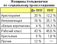 12 лет назад две американские профессорши вновь ввели в научный оборот данные, которые в начале 1920-х годов были опубликованы в журнале «Большевичка». Более половины большевичек (около 52%) по своему социальному статусу соответствовали нынешней интеллигенции (в том числе, аристократия, собственно интеллигенция и «белые воротнички»). Разница между периодами «до 1917» и «сразу после 1917» года была лишь в том, что 12% перестали это скрывать, указывая в своих анкетах «прочие».