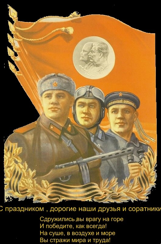 Поздравляю Советский народ с днем Советской Армии и ВМФ.
