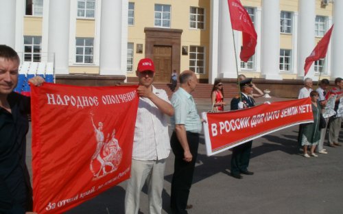 2012-05-22 13:52 Пресс-служба Ульяновского обкома КПРФ 22 мая 2012 года в городе Ульяновске обком КПРФ провел очередные публичные мероприятия против планов развертывания базы НАТО в аэропорту «Ульяновск-Восточный». Как было объявлено председателем ЦК КПРФ Геннадием Зюгановым на митинге 21 апреля в Ульяновске во время проведения Всероссийской акции протеста, в наш город для участия в пикетах и митингах будут приезжать делегации из различных регионов нашей страны. Символично, что первыми в Ульяновск прибыли представители города-героя Сталинграда. Во время Великой Отечественной войны именно в боях за этот город на Волге Красная армия нанесла смертельный удар фашистскому зверю. В наши дни в другом волжском городе – Ульяновске все патриоты нашей Родины под руководством коммунистов начали масштабные действия против допуска в сердце страны агрессивного блока НАТО. Запланированный первоначально пикет на площади Ленина у здания областной администрации, которую возглавляет единоросс Сергей Морозов, получивший у населения прозвище «Швейцар НАТО», пришлось проводить в формате встречи с депутатом ЗСО, руководителем фракции КПРФ Александром Кругликовым. Администрация города Ульяновска, систематически придерживающаяся в отношениях с гражданами принципа «Тащить и не пущать!», не смогла придумать ничего лучше, чем предложить провести пикет на окраине города, мотивируя это тем, что на площади Ленина в заявленное время будет проводиться «публичное мероприятие в рамках проведения Открытого городского фестиваля творчества «Летний венец - 2012». Как это «публичное мероприятие» выглядит, очень хорошо видно на фотографии абсолютно пустой площади. Как говорил подручный Сатаны, один из героев романа Михаила Булгакова «Мастер и Маргарита»: «Поздравляем вас, господа соврамши!». Поскольку подобное вранье стало для администрации города традицией, коммунисты готовят заявление в суд по факту воспрепятствования осуществлению конституционных прав граждан, а именно статьи 31 Конституции Российской Федерации, которая гласит «Граждане Российской Федерации имеют право собираться мирно, без оружия, проводить собрания, митинги и демонстрации, шествия и пикетирования». Лозунги и плакаты, с которыми стояли участники мероприятия, недвусмысленно свидетельствовали об их отношении как к циничным благоглупостям, которые изрек прошедший серьезную обработку в штаб-квартире НАТО вице-премьер путинско-медведевского правительства г-н Рогозин, так и к возможной личной заинтересованности в размещении натовского «пункта подскока» губернатора Морозова. Цветные плакаты с карикатурными изображениями этих господ и туалетная бумага в руках собравшихся оживляли мероприятия. После встречи с депутатом коммунисты и их сторонники встретились в сквере имени Карамзина с проводящими там протестные мероприятия обманутыми дольщиками. В 11:00 был проведен пикет у здания Законодательного Собрания Ульяновской области, на котором выступили прибывшие в наш город комсомольцы Сталинграда. Следует отметить, что сотрудники полиции вели себя весьма корректно и даже подполковник полиции Горшков не пытался вырвать копию Знамени Победы у полковника Советской Армии в отставке Королева, хотя и находился неподалеку. Публичные мероприятия против намерения разместить базу НАТО на