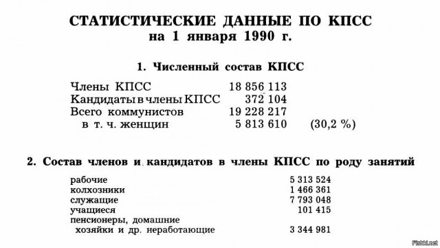 О чём эта картинка,где остальныё 18 миллионов человек,ещё раз,читайте внимательней комментарии,я писал о руководящем составе парторганизаций. Не надо выдумывать,я про простой пролетариат,мелких служащих,трудовое крестьянство не писал,а только о тех кто стоял на трибунах во время парадов и сидел в президиумах на различных собраниях и строго смотрел на слушателей.