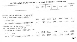 Во-вторых, на Росстате данных про аллергию в разных формах (в том числе и тяжелейших!) почти у 50% населения страны нет . Это базарные торговки, которых Вы наслушались, напиликали . Они там за прилавками и не такие вещи говорят . Сплетни надо отфильтровывать , а не тащить их на приличный форум . В-третьих, давайте посмотрим ГОСКОМСТАТ , как выглядела динамика по онкологии в РСФСР . ![]() Нужно сильно постараться , чтобы не увидеть увеличение количества больных со злокачественными новообразованиями в течении 80-х . И не трудно догадаться что были какие-то причины для роста . Видимо , эти же причины существуют и сейчас . Цитата: