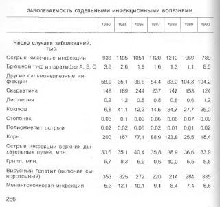 ![]() Справочник "Народное хозяйство РСФСР" : ![]() Острые кишечные инфекции в 1980-м : СССР ... 1,324 млн. ; РСФСР ... 0,936 млн . 0,936/1,324х100%= 70,69% В РСФСР заболеваемость острыми кишечными инфекциями составляла 70,7% от общесоюзного . Сальмонеллёз в 1980-м : СССР ... 110тыс ; РСФСР ... 58,9тыс . 58,9/110х100%=53,5% Цитата: