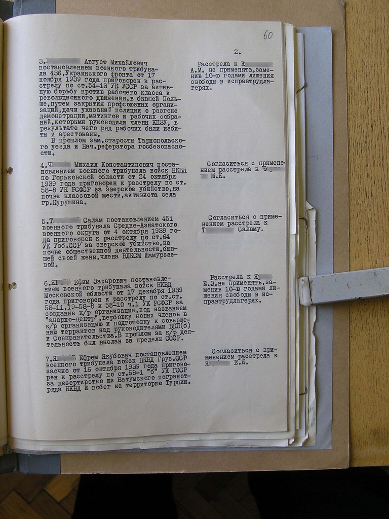 К примеру, можно понять, кого именно репрессировали после того, как Берия возглавил НКВД. Скажем, посмотрите, кто именно и за что открывает список приговоренных к расстрелу. Это последствия чистки Берией ежовского аппарата НКВД. Да и остальные «жертвы» сталинских репрессий особого сочувствия не вызывают (если после стертых мною фамилий нет имен, то это китайцы или корейцы). Интересно также, что сотрудники НКВД, не смотря на потери личного состава, делали все, чтобы даже чеченские бандиты попали в суд – сотрудники НКВД не поступали как сегодня, когда силовики убивают каких попало кавказцев, а потом называют этих убитых ответственными за преступления. Но главное, на мой взгляд, не это. Ведь из этого документа становится понятно, что в СССР ни один человек, даже самый простой и не именитый, не был убит государственными служащими без разрешения самого высшего, реального органа власти – Политбюро. Причем, исходя из того, что несколько человек было помиловано, следует, что Комиссия Политбюро реально рассматривала дело каждого осужденного к расстрелу. А ведь закон не обязывал Политбюро заниматься вопросами помилования – это было делом Президиума Верховного Совета, - тем не менее, члены Политбюро тратили время и силы на то, чтобы параллельно с Президиумом ВС рассмотреть дела осужденных к высшей мере социальной защиты. И делали это вместо того, чтобы понырять за амфорами или слетать на охоту. |