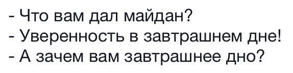 Зимой я ехал в поезде из Киева домой. И со мной в одной плацкарте ехал с майдана безработный сельский житель ЗУ. Из таких, у которых грязь под ногтями въелась в генетический код. И вот он всю дорогу рассказывал, что «на майдани в нас проснулась древня арийська кров, яка спала сорок тысяч рокив, и мы сталы неуязвимымы» (именно на таком суржике). http://anna-news.info/node/25875