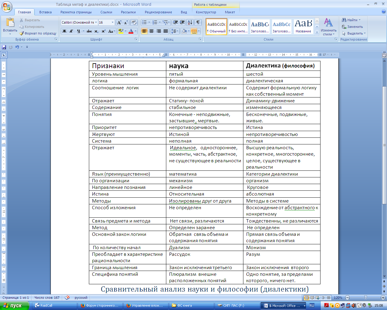 Я отстал от «Коммуники», там много нового и интересного появилось. По предложения Евгения, добавил в сравнительную таблицу науки и диалектики дополнительно отличительные характеристики, найдёшь время – посмотри, что добавить ещё можно, или исправить. Таблица есть наглядное пособие познания отличия науки от диалектики, всё познаётся в сравнении.