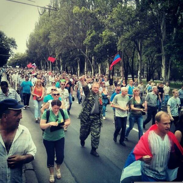 Несколько тысяч митингующих в Донецке дошли до центрального входа резиденции Рината Ахметова. Люди скандируют «Ахметов - враг народа» и «Рината вон». 25 мая 2014, 16:00 ![]() Заместитель председателя президиума Верховного совета Владимир Макович сообщил собравшимся, что в настоящее время силовики провозглашенной Донецкой народной республики ведут переговоры с охраной бизнесмена. Как сообщается, на территоии резиденции самого Ахметова нет. Движение на трассе Макеевка-Донецк парализовано. Рейсовые автобусы отменены. 23 мая прокуратура ДНР возбудила уголовное дело против Ахметова по двум статьям – «За неуплату налогов» и «За попытку свержения власти», - сообщает ИТАР-ТАСС. Напомним, президент компании СКМ Ринат Ахметов 19 мая призвал рабочих своих предприятий выйти на забастовку и подчеркнул, что он категорически против провозглашенной Донецкой народной республики.https://twitter.com/dnrpress/media