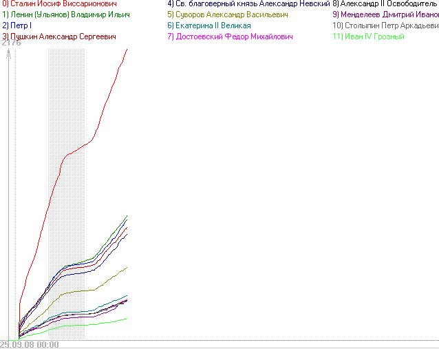 За 23 сегодняшних (30 сентября) часа, было учтено 5 919 голосов, из них Сталин получил 1 573 голоса, Ленин 703 голоса, если кто не в курсе, голосовать можно за нескольких кандидатов, 1 раз в сутки с 1 IP за одного кандидата.