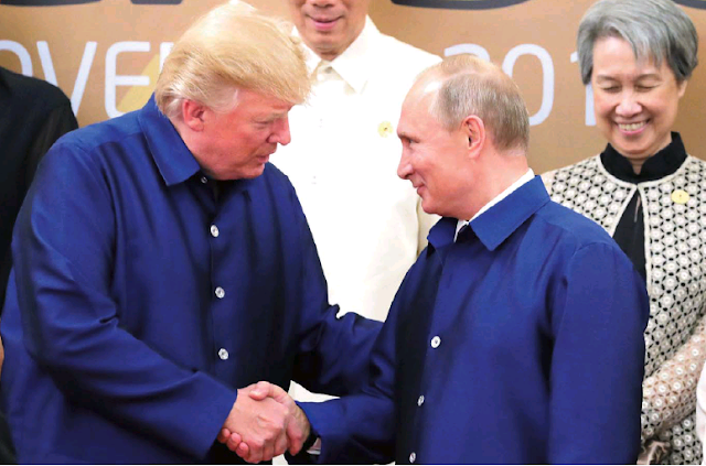 В резолюции 2254 подтверждается политическая линия резолюции СБ ООН 2118 от 27.09.2013, которая в свою очередь подтверждает заявления председателя (председателей) СБ ООН от 3.08.2011, 21.03.2012, 5.04.2012, а также резолюции 1540 (2004), 2042 (2012) и 2043 (2012) - все эти документы в части, касающейся политического процесса в Сирии, основываются на Женевском коммюнике от 30 июня 2012 года, гласящем о воле США изменить правящий режим в Сирийской Арабской Республике. (Коммюнике является сообщением для прессы и не является официальным документом. Заявления председателей СБ также не являются официальными документами). Формальным предлогом для давления на Сирию остается изобретенный в 2013 году предлог применения химического и бактериологического оружия. Однако 4 января 2016 года Организация по запрещению химического оружия (ОЗХО) заявила о полном уничтожении химического оружия Сирии. Глава ОЗХО Ахмет Узюмджю заявил, что в Техасе были переработаны последние 75 цилиндров фтороводорода. Таким образом процесс уничтожения сирийского химического оружия завершился. https://ru.wikipedia.org/wiki/Уничто...о_оружия_Сирии Тем не менее США считают необходимым сохранить и расширить т.наз. "доконфликтные зоны", в которых суверенитет сирийского правительства ограничен, а также продолжить давление под предлогом применения сирийским правительством химического оружия. ![]() Трамп и Путин во Вьетнаме 11 ноября 2017 года Первая встреча Трампа и Путина по Сирии состоялась в июле 2017 года, когда совместно с Иорданией была учреждена южная "деконфликтная" зона на территории Сирии (без участия сирийского правительства). Нынешняя и следующая в ближайшие дни встреча на Филиппинах посвящены легализации пребывания американцев на территории восточной Сирии, восточнее реки Евфрат.