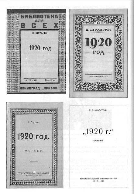 По книге Шульгина “1920 год. Три столицы”, Москва, Посев, 2016 Из предисловия А.В.Репникова Для многих 1920 стал годом определенной ревизии взглядов. 16 февраля этого года А.Н. Толстой писал А.С. Ященко: «Когда началась катастрофа на юге, я приготовился к тому, чтобы самому себя утешать, найти в совершающемся хоть каплю хорошего. Но оказалось, и это было для самого себя удивительно, что утешать не только не пришлось, а точно помимо сознания я понял, что совершается грандиозное — Россия снова становится грозной и сильной. Я сравниваю 1917 год и 1920,и кривая государственной мощи от нуля идет сильно вверх. Конечно, в России сейчас очень не сладко, и даже гнусно, но думаю, мы достаточно вкусно поели, крепко поспали, славно побздели и увидели, к чему это привело. Приходится жить, применяясь к очень непривычной и неудобной обстановке, когда создаются государства, вырастают и формируются народы, ко! да дремлющая колесница истории вдруг начинает настегивать лошадей, и поди поспевай за ней малой рысью. Но хорошо только одно, что сейчас мы все миновали время чистого разрушения (не бессмысленного только в очень высоком плане) и входим в разрушительно созидательный период истории. Доживем и до созидательного» (Цит. по. Варламов А.Н. Красный шут: Биографическое повествование об Алексее Толстом // Москва. 2005. № 8. С. 85.) 12 марта 1920 г. В.А. Маклаков [бывш.посол Временного прав-ва во Франции] писал Б.А. Бахметеву [бывш.послу Временного прав-ва в США]: «Если мы не могли задавить большевизм извне <...> то Россию спасем уже не мы, заграничные счастливцы, а те, кто сейчас в России, и те из большевиков, которые одумаются, и те из патриотов, которые там притаились, и те, наконец, которые пошли на службу к большевикам для того, чтобы их переродить. Всю надежду тогда приходится возлагать на рост отрезвления изнутри большевиков России: наша деятельность должна быть согласована с ними. Я бы сказал: руководство движением должно быть передано им. <... > Более того, нужно будет рекомендовать всем, кому угодно поддержать этот элемент не отсюда, а идти работать вместе с ними в Россию, т.е. становиться в положение тех, кого мы осуждали. Вот это-то я называю примирением с большевизмом»29. (Совершенно лично и доверительно!: Б.А. Бахметев — В.А. Маклаков: Переписка 1919-1951: в 3 т./ под ред. О.В. Будницкого. М., 2001. Т.1: Август 1919-сентябрь 1921. стр. 187) Шульгин. 1920 год. Очерк "Взгляд и нечто" «Против воли моей, против воли твоей» наши идеи перескочили через фронт... Дальше... Наш главный, наш действенный лозунг — Единая Россия... Когда ушел Деникин, мы его не то, чтобы потеряли, но куда-то на время спрятали... мы свернули знамя... А кто поднял его, кто развернул знамя? Как это ни дико, но это так... Знамя Единой России фактически подняли большевики. Конечно, они этого не говорят... Конечно, Ленин и Троцкий продолжают трубить Интернационал. И будто бы «коммунистическая» армия сражалась за насаждение «советских республик». Но это только так сверху... На самом деле их армия била поляков как поляков. И именно за то, что они отхватили чисто русские области. И даже если этого настроения не было... Все равно... все равно... — Я с вами совершенно согласен... это ясно... фактически Интернационал оказался орудием... расширения территории...для власти, сидящей в Москве... До границ... до границ, где начинается действительное сопротивление других государ