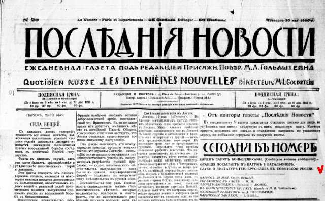 В июне 1920 г. в белоэмигрантской харбинской газете "Новости Жизни" была напечатана статья известного белоэмигрантского философа, зачинателя национал-большевизма Устрялова о Брусилове.