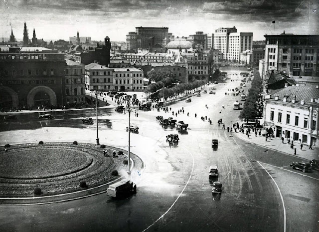 ![]() Лубянская площадь, 1948 год В районе Кремля, Лубянки и других центральных мест Москвы в 1920-1940-х годах были установлены памятники практически всем выдающимся революционерам - руководителям Советского государства. Монументальное искусство было основой советского искусства.