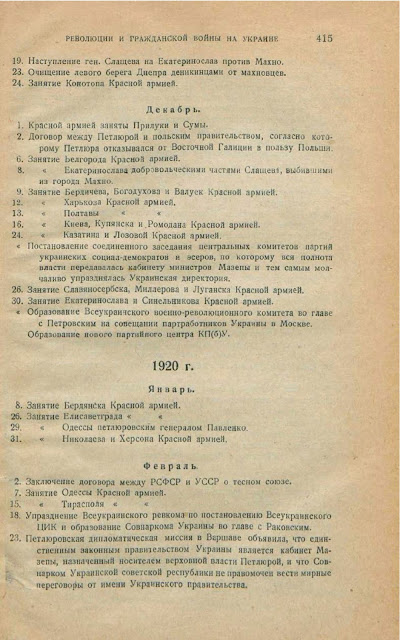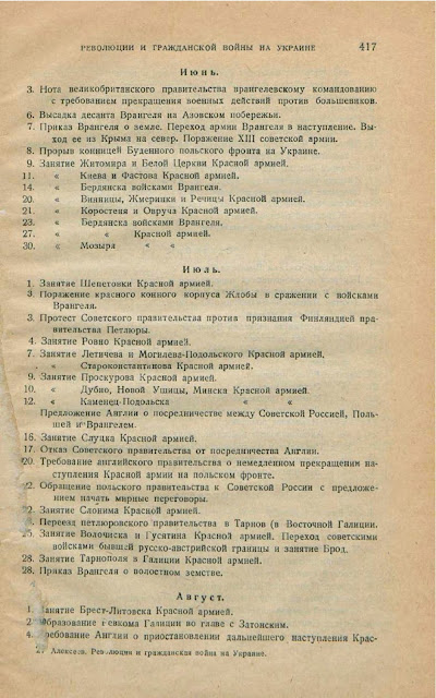 Хронология событий на Украине в 1920 году (из книги С.А.Алексеева "Революция на Украине по мемуарам белых", Москва-Ленинград, 1930)