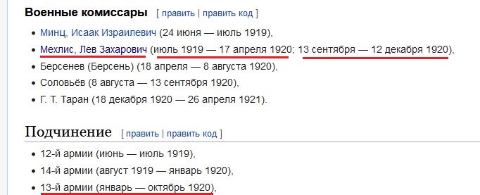 Мехлис исполнял обязанности комиссара 46 дивизии 13 армии РККА в период с июля 1919 по 12 декабря 1920 г. с перерывом 17 апреля-13 сентября 1920 г.
