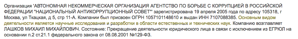 Оказывается, существуют кремлевский Национальный антикоррупционный совет (в последней его производной главный некто Лашков) и околокремлевский Национальный антикоррупционный комитет (здесь главным сборщиком выступает некто Кабанов). Еще в далеком 2010 году в статье "Поле антикоррупционных чудес" Лашков через подставных журналистов, само собой, громил Кабанова следующими словами: "[...] НАК: громкие заявления с тихим концом На этом фоне чуть менее брутально выглядит активность так называемого «Национального антикоррупционного комитета» (НАК), созданного в достославные 90-е годы и возглавляемого бывшим офицером ФСБ Кириллом Кабановым. Изначально в эту общественную организацию закладывались самые благородные цели и задачи. Здесь вам и объединение гражданских усилий, и оказание содействия, и даже «подготовка условий для создания специализированной государственной структуры, ответственной за проведение антикоррупционной политики». Словом, планировались громкие дела с размахом. Самым, пожалуй, ударным обещало стать детище НАК под символичным названием «ОСА» - «Общественный союз «Антикоррупция». Именно под ее знаменем, безо всякого юридического статуса, Кирилл Кабанов, ставший ее председателем, грозился жалить всех, и дать смертный бой коррупционерам. По словам Кабанова, члены комитета намерены публиковать фамилии чиновников, которые будут замечены в коррупционных действиях. Кабанов обещал информировать о чиновниках-негодяях не только широкую общественность в России, но и доводить до сведения собранные материалы в соответствующие антикоррупционные комитеты западных стран. Это, согласно декларациям, «повлечет за собой, по существующим там нормам, запрет на оформление визы, аресты имущества за границей». Было, правда, это аж в 2004 году. Тогда финансовые аппетиты ОСА оценивались в сумму от 300 тысяч до 1 миллиона долларов – какая же борьба с коррупцией без денег? Однако подозрения в том, что весь пафос борьбы имеет политическую подоплеку, оправдались и разочаровали гражданское общество. Летом 2004 года НАК и ОСА нашли себе в своем нелегком деле удивительного партнера – партию Союз правых сил, члены которой, мягко говоря, всегда имели специфическое отношение к коррупции, а потому проект так и остался на бумаге, завершившись после торжественного фуршета по случаю его презентации. О политической ангажированности НАК можно судить и по другим характерным моментам вроде походов по заседаниям антироссийского «Комитета-2008» или «Другой России», где с удовольствием рассуждают о тех, кто взятки берет, а тех, кто эти взятки несет и дает – не замечают. При этом, как отметил еженедельник «Собеседник» в статье «Борьба с коррупцией пошла НАК» «борец с коррупцией» Кирилл Кабанов через гранты «Открытой России» активно осваивал деньги нефтяной компании ЮКОСА, руководители которой, как известно, сейчас осуждены за многомиллиардные хищения. Выступал он, как пишет журналист Михаил Лашков, и соисполнителем работ для американских аналитических центров – таких как Brookings Institution, Kennan Institute for Advanced Russian Studies, Rand Corp., Center for Strategic and International Studies и Всемирного Банка, – резюмирует Михаил Лашков. – Неприкаянный Кирилл Викторович – всего лишь рупор иностранного капитала, пытающегося воздействовать на умы наших граждан посредством подачек, именуемых грант