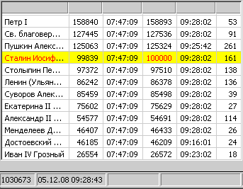 Так или иначе, ни в одном из броузеров мне не удалось зафиксировать ровно 100.000, и „праздничная фотография” не состоялась. Internet Explorer (выдававший, как всегда, наибольшую цифру) перескочил сразу же с 99.998 на 100.001. Это произошло за 2 минуты до того, как мой сканер общих сумм (он берёт данные со страницы rating.html; и именно с него screenshot’ы я иногда публикую) наконец-то выдал желанные 100.000.