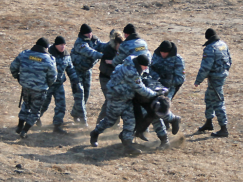 Открываем словарь в yandex: Акция протеста — действие, связанное с неприятием чего-либо, возражение, заявление о несогласии с чьим-либо решением. Демократическое общество не ограждено от акций протеста, поэтому поиск путей к согласию — из правил политической игры, игнорировать которое противопоказано в силу демократического образа жизнедеятельности. Получается, выразил свое несогласие с чьим-либо решением — получил по почкам. При этом хотелось бы заметить, что собравшиеся на площади владивостокцы ни коим образом не мешали другим горожанам: не было ни плакатов, ни призывов, ни выкриков — люди просто собрались на площади и водили хороводы вокруг елки. Почему ОМОНовцы решили, что это и есть «акция протеста» — не понятно. Тем не менее, ОМОН, по слухам, прибывший из Москвы, «ломал» каждого попавшегося под руку. Задерживали даже людей с детьми, которые вышли на обычную прогулку. — Собравшихся попросили разойтись, — говорит один из полковников милиции. — Они никак не отреагировали. Тогда было решено применять силу. Все было в рамках закона. В это время Владивостокские милиционеры стояли белые и только повторяли: — Мужики, это не мы, мы к этим зверствам не причастны… 21 декабря бойцы ОМОНа жестоко разогнали людей, собравшихся на площади Борцам за власть Советов во Владивостоке. Несколько человек получили серьезные травмы, журналистам разбили аппаратуру, около ста человек доставили в отделения милиции. Им грозят штрафы и перспектива провести Новый год за решеткой. Зачем милиция грубо разбрасывала мирно настроенных жителей города, часть из которых с детьми просто прогуливалась в воскресный день на площади? Комментариев на этот счет пока получить не удалось. Но конституция РФ гласит: «Граждане Российской Федерации имеют право собираться мирно без оружия, проводить собрания, митинги и демонстрации, шествия и пикетирование» (ст. 31). Так почему за свое право, подкрепленное законом, люди расплатились собственным здоровьем? Теперь можно произвести простое арифметическое действие: народ, разозленный перспективами остаться без доступных японских авто и разгоряченный невниманием властей, плюс дубинки и град ударов ОМОНа. Что в итоге? — еще большая обозленность, отчаянье и полное осознание: помощи от власти ждать нечего, надежда только на себя. Остается только вопрос: почему людям не дали просто высказаться? Ну, собрался народ на площади, ну поводил хоровод вокруг елки. Ну, сказал бы потом пару гневных слов в камеры. Но их недовольство и паника понятны. Ведь не просто переключиться: десять лет кормил семью, продавая машины, десять лет мог позволить себе авто. А теперь ты должен искать работу в кризис на стройках саммита и годами копить на машину. Этот страх очевиден, он осязаем. Но вместо того, чтобы народ поддержать, его еще больше загоняют в угол. Но ведь в других городах горожанам дали высказаться. В Хабаровске разукрасили «Жигули» для Путина, в Новосибирске проехали колонны по городу с включенными фарами, тоже было и в Иркутске, и еще во многих городах. Везде горожанам РАЗРЕШИЛИ выразить свое мнение. Везде все прошло МИРНО. Чего добились силовики своими действиями, к чему спровоцировали? Ответ очевиден. — Москвичи сегодня натворили дел, — рассказал нам один из милиционеров Владивостока. По понятным причинам он не хочет называть своего име