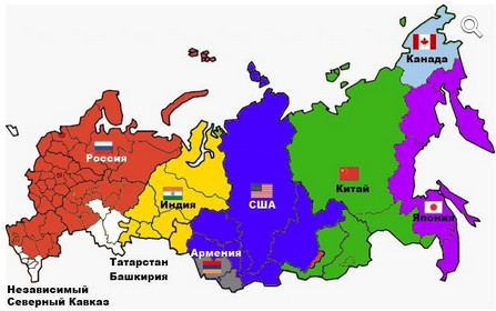 Смотрите,сейчас регионов практически нет,есть федеральные округа)Что позволяет провести референдум и отделится от России)Уровень жизни-падает)Может конечно в Москве это и не видно,но на периферии заметно очень) Так,что вполне возможно скоро начнут отделятся регионы,вернее федеральные округа) |