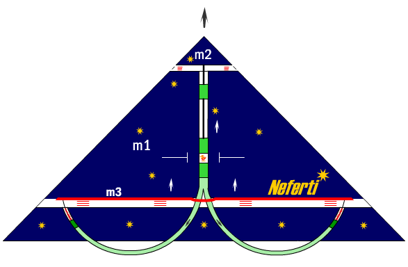 Устройство двигателя антигравилёта «Неферти». Описание – В середине – камера сгорания. Во время очередного такта-взрыва поршни разлетаются в разные стороны. Замечу - каждый из поршней служит друг для друга точкой опоры, от которой они взаимоотталкиваются! Нижний гантелеобразные поршень, центральный, двигаясь вниз, сдавливает «тормозную жидкость». Она же передаёт своё давление изогнутым гантелеобразным поршням. Которые более тонкие, чем металлические трубы, в которых они находятся. Таких труб должно быть парное число 6-8. Во время взрыва, передавая по принципу «домино» свою силу, поршни, 6-8, метают красное кольцо (m3) . Которое летит вверх и тащит за собой, как на буксире, весь аппарат (m1). Между красным кольцом (m3) и тёмно-зелёным (m1) не жёсткая связь, что-то вроде амортизаторов, пружин. Тёмно-зелёное кольцо приварено к аппарату намертво. Потеряв во время метания вверх свою силу, красное кольцо (m3) и поршни «автоматически» возвращаются в камеру сгорания для нового такта взрыва. В это же время верхний центральный поршень, вылетает из камеры сгорания, как снаряд из пушки - летит вообще ничем нескомпенсированный! Толкая вверх макушку (m2) пирамиды, или камень Жизни - Бен-Бен. А так как макушка (m2) пирамиды связана со всем аппаратом не жёсткой связью, то она, как на буксире, тащит за собой также весь аппарат. Потеряв свою силу во время метания вверх, макушка (m2) пирамиды и центральный поршень возвращаются назад в камеру сгорания, где их сила отдачи взаимогасится (!) с нижним поршнем, который возвращаясь назад, движется вверх в камеру сгорания. В это же время открывается выпускной клапан, и отработанные газы, от силы сжатия поршней, выбрасываются наружу. Замечу, что сила отдачи перезаряжает автомат в кривоствольном оружии (как здесь!), а сила противодавления отбрасывает его назад. А то раньше до меня не видели разницы между этими двумя силами. Двух сил отдачи во время выстрела не бывает! И это есть Открытие в физике! Из этого можно сделать вывод, что чем меньше будет действие нежелательных сил, к которым относятся такие силы, как сила противодавления, центробежная сила и сила трения, тем более скоростным будет полёт такого антигравилёта. Движение нижних поршней по изогнутым трубам будет создавать центробежную силу, и приводить к трению, из-за их касания к внутренним стенкам металлических труб. Можно вместо движущихся нижних поршней, на всю длину труб, поместить в них тормозную жидкость. При её сжатии центральным поршнем, противодавление, как нежелательная сила, будет отбрасывать аппарат (m1) назад. А метаемое красное кольцо (m3) будет двигаться вверх. Результат - действие будет равняться противодействию! Но верхний поршень с пирамидкой (m2), камнем Бен-Бен, улетает вообще ничем нескомпенсированный! К тому же сила противодавления не такая сильная сила, как сила отдачи - возможно, что и метаемое красное кольцо (m3) будет в данном случае двигать аппарат тоже вверх. Заранее говорю всем критикам – этот антигравилёт спроектирован мною в 2003 году, и он уже не секретный, но стоит его переделать, и он сразу же становится скоростным. И ваши сомнения и критика отпадут сами собой. Есть такая русская поговорка – «против лома нет приёма». Не забывайте о ней. |