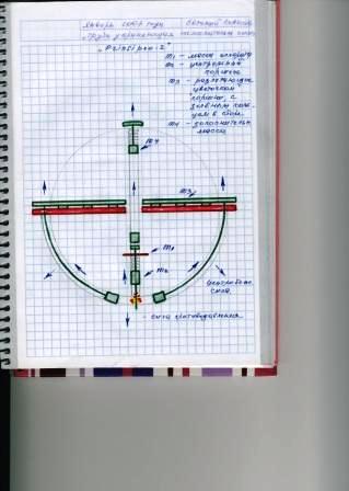 Объяснение работы двигателя антигравилёта "Prinsipeo". В антигравилёте - "летающем автомобиле", может быть любой двигатель - электрический, механический, пневматический, но мне ближе ДВС. Все мои антигравилёты, это по сути автоматические пушки, которые метают массу от точки опоры, с определённой тактовой частотой. Чем больше частота тактов (взрывов), тем более плавным будет полёт - здесь аналогично с частотой кадров телевизионного изображения, в результате чего получается литое изображение. Внизу традиционная камера сгорания. Зажигание, взрыв, и гантелеобразные поршни от силы взрыва разлетаются в разные стороны. Их 6-8 в аппарате и расходятся снизу как лепестки цветка. Замечу, что каждый их поршней, друг для друга, для своей пары, служит точкой опоры! От которой они взаимоотталкиваются. (Это Открытие в данном деле - создание своей, внутренней точки опоры, вспомните что сказал Архимед - дайте мне точку опоры и т.д. И этим отличаются мои "вертикальные инерцоиды", что они имеют свою точку опоры, от "горизонтальных инерцоидов других изобретателей!). Искривлённые и гантелеобразные поршни движутся по трубе меньшего диаметра, чем они сами. Метая тем самым красное кольцо, массу м2, которое расположено вокруг аппарата. Через не жёсткую связь, пружины или амортизаторы, красное кольцо соединено с зелёным кольцом, а то приварено "намертво" к аппарату. Смысл в том, что когда красное кольцо через поршни метается вверх, то оно как "на буксире" тащит за собой зелёное кольцо, а значит и весь аппарат, массу м1. Здесь тот же принцип - когда одна машина, через не жёсткую связь, тащит за собой "на буксире" другую машину. Когда сила тащить за собой весь аппарат у красного кольца заканчивается, то оно "автоматически" опять заходит для нового такта - взрыва в камеру сгорания. И чем больше будет частота взрывов, тем более плавным будет полёт. При этом сила отдачи поршней взаимогасится (!) друг от друга. А это ещё Открытие в этом деле - взаимогашение силы отдачи! (Вроде всё просто, но без понимания этих истин, невозможно конструирование и полёт антигравилётов в дальнейшем! Если изобретатели инерцоидов этого не понимают, то полёт их аппаратов невозможен!). Хотя сила отдачи и взаимогасится, но нежелательные силы всё равно будут противодействовать, и стремится отбросить аппарат назад! Какие это силы и можно ли уменьшить их нежелательное действие? Сила трения - можно уменьшить маслом, центробежная сила (перегрузки) - внизу поставить ограничители хода поршней, как показано это на рисунке. И сделать данный аппарат большим, не менее 5 метров. Чтобы ход нижней части поршней шёл практически по прямой трубе, но слегка изогнутой! Есть ещё и сила противодавления, которая отбрасывает аппарат назад, но в данном двигателе, из-за ограничителей хода поршней, эта сила малозаметна. В Науке не делают разницы между силой отдачи и силой противодавления, хотя это разные силы! Противодавление в кривоствольном автомате отбрасывает его назад, а сила отдачи его перезаряжает! И это четвёртое Открытие в этом деле! В любом случае, высвобождённая сила взрыва, как самая сильная сила, пересилит все нежелательные силы. Первым Открытием в этом деле считается, то что высвобождённая сила взрыва способна размыкать замкнутую систему. Доказано экспериментально, что стоит изменить направление силы на точку опоры, как