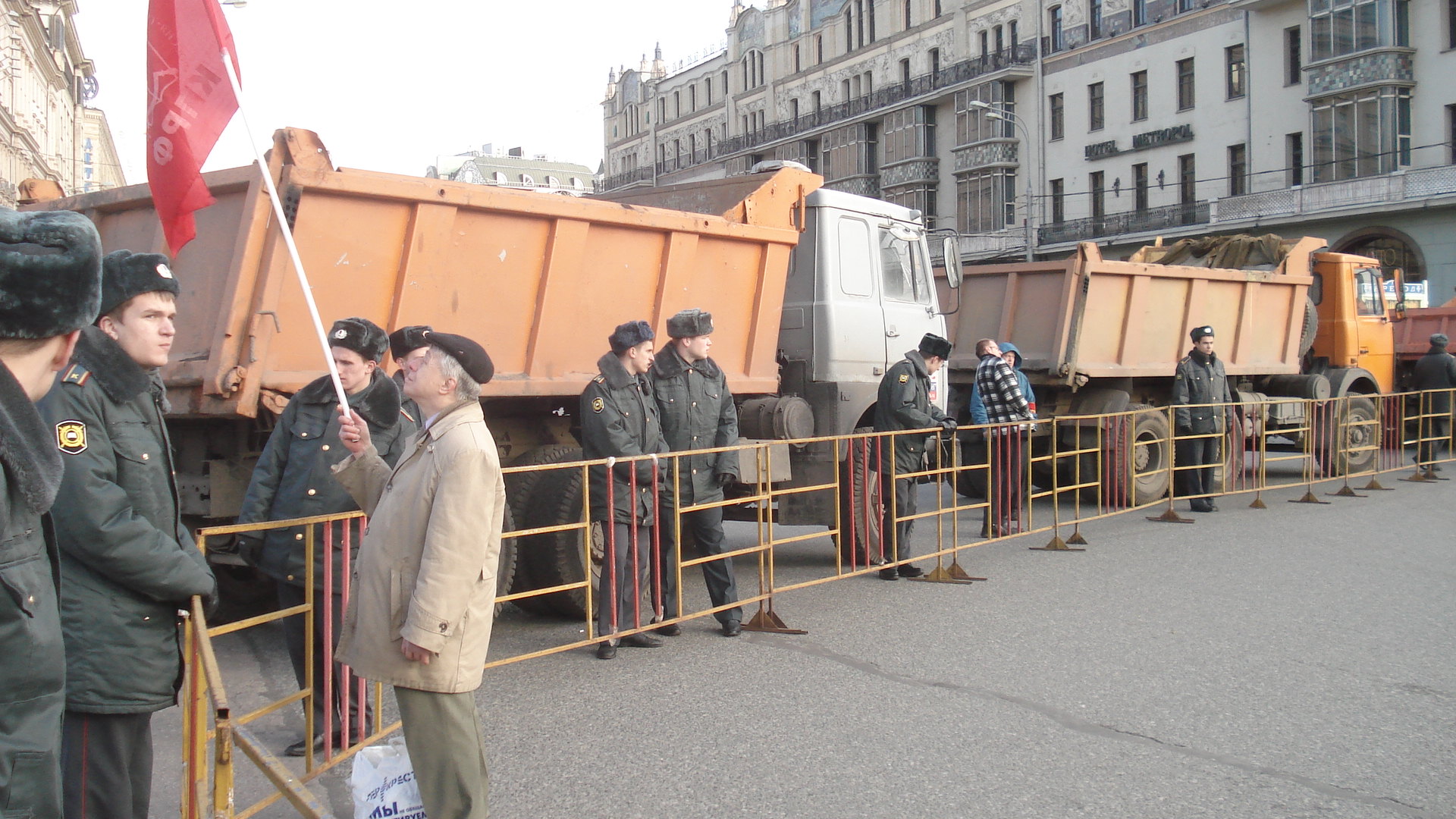 Невольно пришлось сравнивать с митингами коммунистов, потому что некотрые моменты очень бросались в глаза, к тому же я ещё успела и на наш митинг. 1. Поведение милиции Милиции было очень мало, стояли поодаль, в оцепление никого не загоняли, вообще никак не препятствовали . В конце митинга, когда организаторы как всегда поблагодаоили милицию за обеспечения порядка раздались угрожающие смешки. Если бы десантники что замутили, милиция не вмешивалась бы точно. Да их можно было по пальцам перечесть. Как было на митинге коммунистов, да собственно и всегда так бывает последнее время, смотрите ниже на фото. 2. На митинге десантников была чётко сформулирована цель. И принята конкретная резолюция - 10 дней сроку. Я уверена, что власть сейчас ищет решение, и думаю, что к требованию отнеслись серьёзно, а не просто дали возможность поговорить. Посмотрим что будет через 10 дней. Или их сломают , уговорят, найдут компромисное решение- но настрой был, ни в коем случае не идти ни на какие компромиссы. 3. По поводу В. Ачалова. Выступление В.Ачалова на фоне других выступающих было очень мягкое, почти никакое. И я вспомнила, что писал здесь в теме МАГНИЙ. Да, при всём моём уважении к В.Ачалову прослеживается схожесть ситуации. Низы готовы идти до конца, как это и было в 93 году, а верхи тормозят весь этот порыв. 4. Как это ни горько осознавать и писать и видеть , но на наших митингах народ стоит в загоне за решётками как стадо, их окружают со всех сторон тройными кордонами, машинами, не дают пройти туда людям не успевшим вместе с колонной- это унизительно и подло. Они отыгрываются на тех, кто не может оказать сопротивление. И что самое обидное эта практика последние годы укоренилась и никто даже не пытается этому сопротивляться, а организаторы спокойно это воспринимают. Это же унижает людей, со стороны это выглядит жалко и унизительно, никто из посторонних не подойдёт и не послушает, а свои уже это всё сто раз слышали. Я когда уже подъехала, то специально всё это поснимала на фото. Там же, на митинге десантников, попробовали бы собрать их в загон...