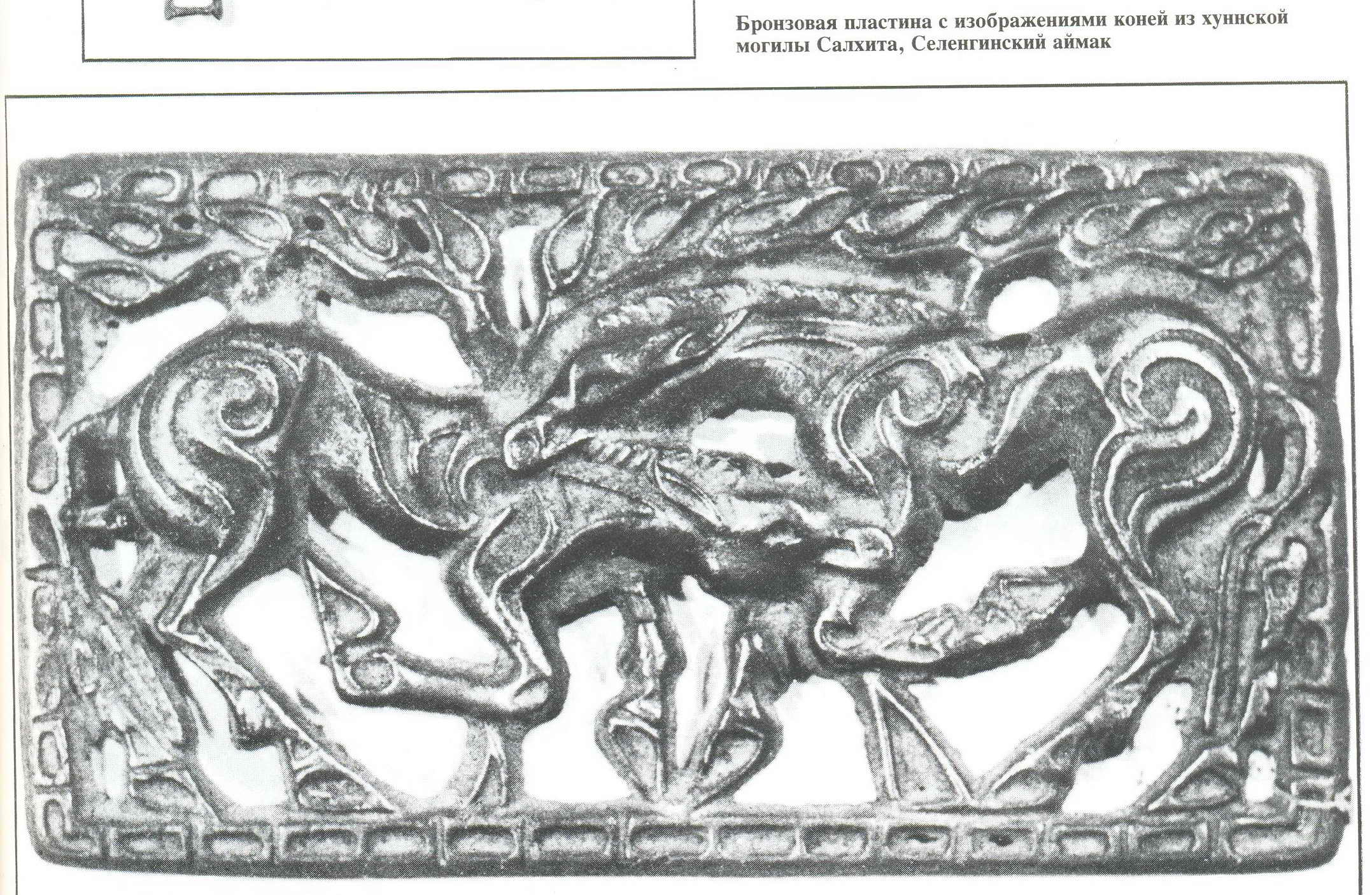 Пластинка из бронзы. Кони. Монголия. Хуннская могила.