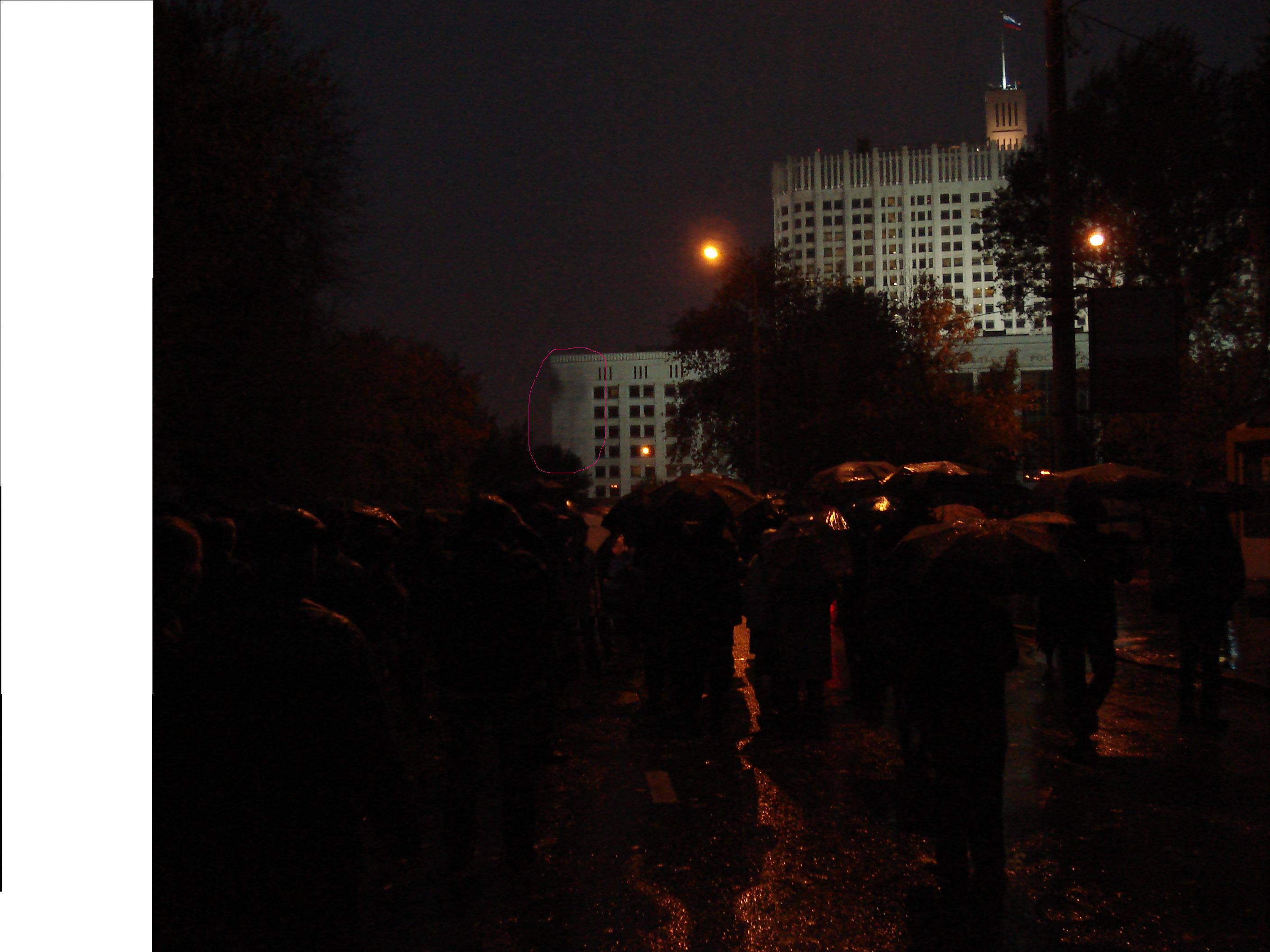Прошу обратить внимание на последнее фото. В конце мероприятий вдруг кто-то заметил, что слева, на низкой части здания ( бывшего ВС) стало проступать пятно, как будто гарь, а потом стал вырисовываться крест ( на фото это место обведено). Это прям мистика!.Все повернулись и стали смотреть туда, даже милиция. Ещё хочу сказать , что всё перекрыла милиция. Проход в сквер, где построена часовня, в честь погибших был закрыт, милиция никого не пускала туда. Да и здесь всё было оцеплено, оставили небольшое пространство и вскорости после панихиды стали вытеснять и отсюда.