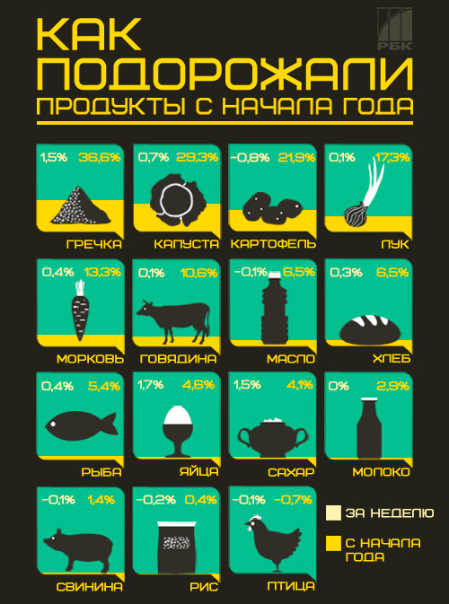 За прошедшую неделю наиболее сильно подорожали пшено, яйца и гречка - на 2%, 1,7% и 1,5% соответственно. Цены на хлеб, рыбу и отдельные виды кондитерских изделий выросли в среднем на 0,3-0,4%. Капуста стала дороже на 0,7%.