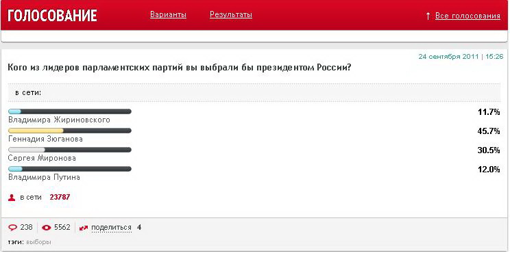 Результаты голосования на Эхо=Москвы http://www.echo.msk.ru/polls/814775-echo/results.html Последний раз редактировалось Диспетчер; 03.10.2011 в 15:25. |