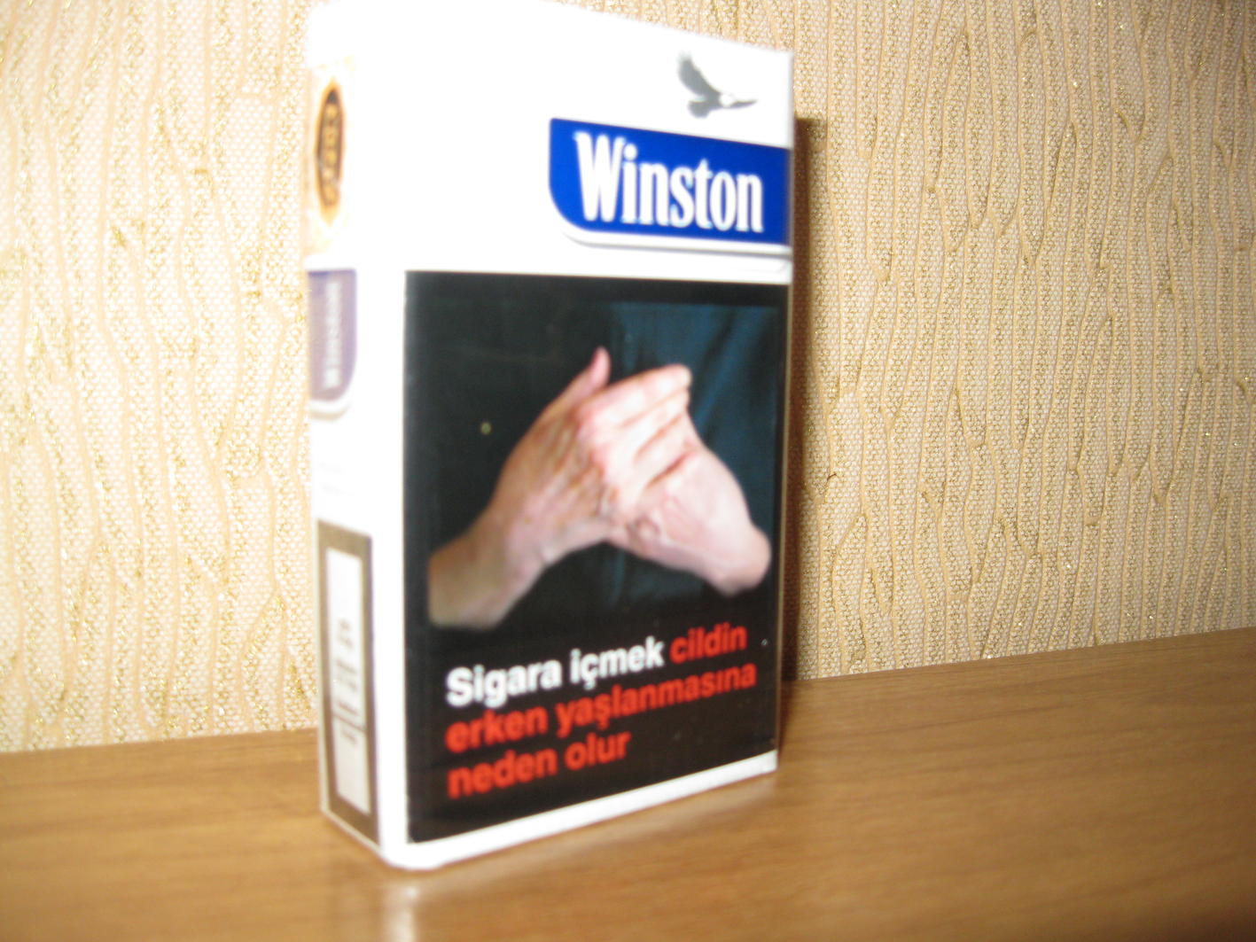А вот пачка турецкого "Винстона" с картинкой курильщика в гробу. И это не самые "крутые" изображения. Легкие и зубы курильщиков я не стал выкладывать по этическим соображениям. |