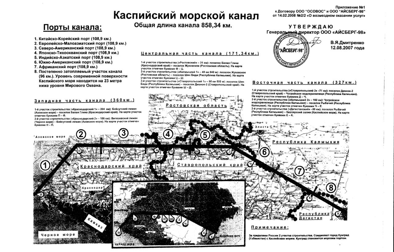 уже не наша, во всяком случае "не совсем". Бакинская нефть тоже к России отношения не имеет. ... ... Шельф северной части бассейна Каспийского моря богат и нефтью, но не так, чтобы очень. Да и добыча затруднена - это не Чечня, где нефть чуть ли не ведрами можно черпать. "Лукойл" и "Окиос" там, конечно, давно пасутся..." (Цитата 2) Второй ответ: даю отрывок из письма Президенту Азербайджанской Республики, такой-же текст послан Президенту Республики Казахстан ..."Общество с ограниченной ответственностью «ОСОВОС» просит Вас взять на себя попечительские заботы над проектом строительства Каспийского морского канала. Общий план канала прилагается. Доходная часть бизнес-плана этого проекта тоже прилагается. Конечно, в начале своей работы Каспийский морской канал будет давать не такой большой доход. Но, даже работая в 1/10 (одну десятую) часть своей мощности и пропуская всего 9 танкеров в сутки, этот канал принесет доход, равный бюджету всей громадной России. Если Каспийский морской канал будет построен (это очень реально сделать за пять лет при современной технике), то Азербайджан получит выход в Мировой океан, а это позволит: 1.Самостоятельно продавать каспийскую нефть на мировом рынке по мировым ценам. На дне Каспийского моря нефти не меньше, чем в Саудовской Аравии. В районе Каспийского моря, по сведениям геологов, самые крупные в мире из всех разведанных в настоящий момент нефтяных месторождений на Земле, – более 270 (двухсот семидесяти) миллиардов баррелей нефти, а это 20% (двадцать) процентов всех мировых запасов нефти. Продажа каспийской нефти резко улучшит благосостояние граждан Азербайджана. Нефть не только топливо, но также и сырье для всевозможных искусственных материалов, а главное, нефть – это синтетическая пища, что особенно важно для стремительно растущего человечества (Китая, Индии, Бразилии и других стран и народов). Поэтому, недостатка в покупателях каспийской нефти не будет, и танкеры по Каспийскому морскому каналу пойдут потоком, цепочкой, как муравьи друг за другом. 2. Промышленные бизнесмены в Азербайджане через Каспийский морской канал получат выход в мировой океан и на мировой рынок. Спрос промышленных бизнесменов на грузоперевозки и пассажирские перевозки по Каспийскому морскому каналу будет большой, ведь морские грузоперевозки и морские пассажирские перевозки – это самый дешевый и самый выгодный из всех других видов перевозок грузов и людей. Промышленность и экономика Азербайджана получит большой поток дешевого сырья и полуфабрикатов, что тоже улучшит благосостояние граждан Азербайджана. 3. Торговые бизнесмены в Азербайджане через Каспийский морской канал получат выход к торговым рынкам мира. Торговля резко увеличится, (торговые грузоперевозки – это самый дешевый и самый выгодный из всех других видов торговых перевозок грузов) что тоже улучшит благосостояние граждан Азербайджана. Наши предложения Мы в настоящий момент начали строить Каспийский морской канал."... С уважением, Подпись: Виктор Яковлевич |