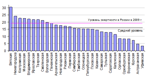 Сравнение трех карт показывает, что помимо почти повсеместного, но очень небольшого повышения показателей смертности, область высокой смертности расширилась и несколько сместилась на Север. Существенно уменьшились различия между Россией и Украиной, а различия между Россией и Белоруссией стали минимальными. В то же время различия между Россией и Балтийскими странами и между северной и южной частью России, в основном, сохранились. Бывшая Вятская губерния, ставшая Кировской областью, по-прежнему на одном из первых мест по уровню скоропостижной смертности в состоянии опьянения. В 2009 г. по этому показателю ее опережала и то не много (58,8 против 57,0) Архангельская область. В то же время в соседних с Кировской областью Татарстане и Башкирии (в прошлом, Казанской и Уфимской губерниях) сохранились одни из самых низких уровней – 7,0 и 10,2 на 100000 или 43 и 41 места в списке из 49 регионов.