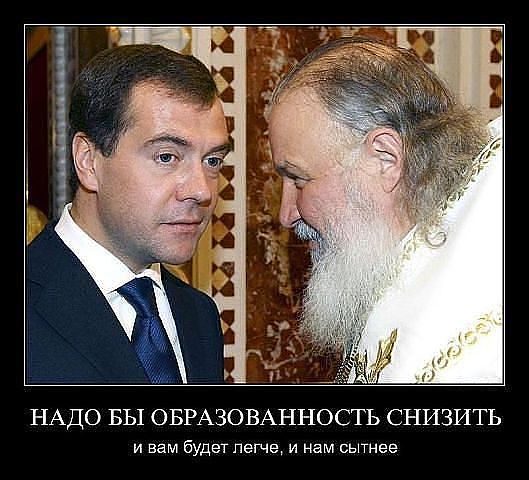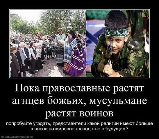 вражеская власть - всегда держится исключительно на вере олухов.."С использованием религиозной мотивации, религиозных чувств мы будем формировать человека, который будет не способен взять в руки оружие, силой доказывать свое превосходство, формировать этнические клановые группы, которые вступают в борьбу с другими", — отметил патриарх, посетовав, что до сих пор возникают трудности с введением курса по основам религиозных культур в школах.