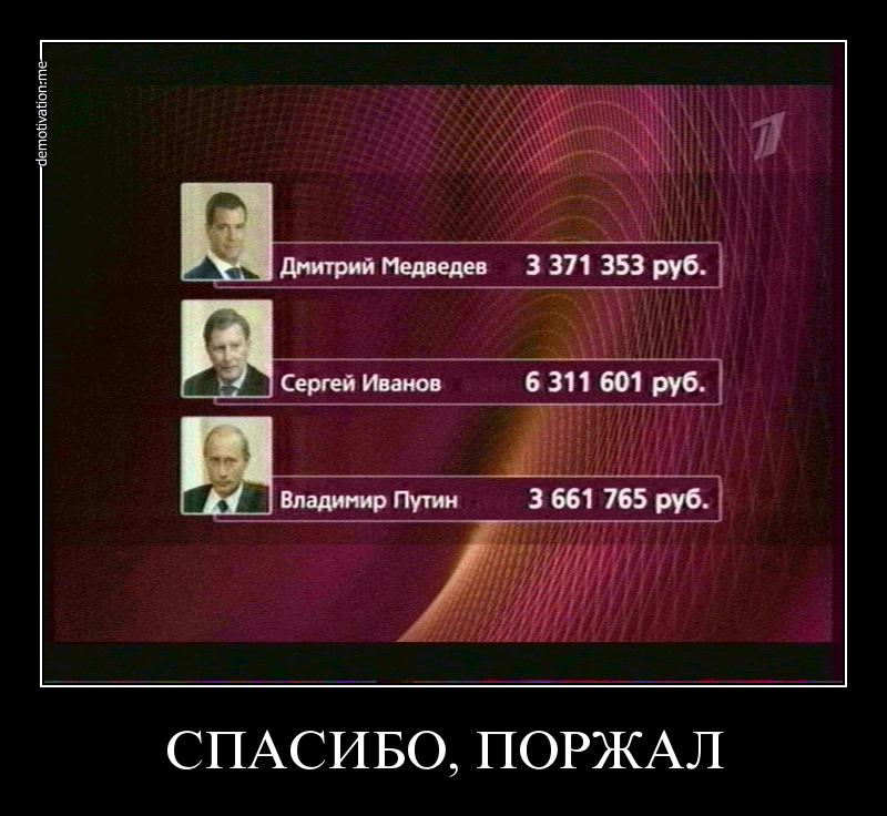У меня есть один очень смешной коллаж Демотиватора, но разместить его невозможно из-за не совсем приличной подписи. Картинка такая: знаменитая скульптура Веры Мухиной "Рабочий и колхозница" пинает под задницу медведя(символизирующего Единую Россию), который убегает от нее со всех ног, и внизу подпись аршинными буквами Пошел на х... |