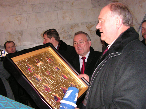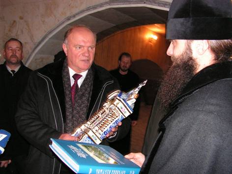 В Курске с участием лидера КПРФ прошла торжественная церемония возложения цветов к памятнику В.И.Ленину и памятной стеле героям-курянам, в которой приняли участие сотни жителей города. Председатель ЦК КПРФ провел встречу с партийным активом области, где был обсужден ход выборной кампании и технологии работы партийных организаций на завершающем этапе выборной кампании в Думу. Затем в новом здании обкома КПРФ прошла пресс-конференция для региональных СМИ. - У нас есть возможность серьёзно прибавить на нынешних выборах, - заявил Г.А.Зюганов, обращаясь к партийному активу. - Страна полевела. Настроения в нашу пользу. Задача - уберечь голоса. Очевидно, что "Единая Россия" не в состоянии набрать заявленные две трети голосов, чтобы объявить этот результат успешным голосованием за так называемого национального лидера. Обирать партии власти некого на нынешних выборах, кроме как КПРФ. Мы обязаны отработать технологии, не допускающие воровства наших голосов. "Понимая, что "Единая Россия" проседает, Кремль решил по ходу кампании изменить правила борьбы, - заметил Г.А.Зюганов. - Вместо думских выборов нам устроили вакханалию под лозунгом "референдум за Путина". Если уж хотели такой референдум - так провели бы. Но ведь они сами запретили проведение референдумов в год выборов. И теперь организовали жульничество, подменяя парламентские выборы каким-то референдумом. Выборы парламента и голосование за главу исполнительной власти это не одно и тоже. По сути тем самым закрепляют роль парламента как придатка исполнительной власти". - В последние дни перед выборами партийные комитеты должны запустить несколько технологий, которые позволят нам сберечь наш результат, - подчеркнул Г.А.Зюганов. - Прежде всего, это контроль, альтернативный подсчёт голосов и подготовка к возможным акциям протеста 3-5 декабря в защиту наших голосов. Посещение третьего духовного центра России: символичный дар Г.А.Зюганову Председатель ЦК КПРФ посетил мужской монастырь Курская Коренная пустынь, где ознакомился с историей одного из духовных центров Русской земли, святынями обители. Лидер КПРФ сделал запись в книге почетных посетителей историко-культурного центра: "Россия может быть сильной только будучи справедливой и духовной. Я искренне благодарю сотрудников центра, которые бережно хранят народную память. Преумножают все лучшее и доброе, что было в истории Великой России. С уважением Г.А.Зюганов". Затем от имени братии монастыря Г.А.Зюганову иеромонахом Спиридоном, исполняющим обязанности наместника был преподнесен аналойный список со святыни - Курской Коренной иконы Божией Матери "Знамение". Курская Одигитрия - Путеводительница вдохновляла русское воинство и главнокомандующего Кутузова на победу над Наполеоном. Принимая дар, лидер КПРФ с признательностью заметил: "С особым чувством нахожусь на этом святом для каждого русского человека месте, с которым чудным образом связаны ключевые моменты нашей истории. Курская Коренная икона Божией Матери издавна считается защитницей русского воинства. Она связана с именем Кутузова и его победами. И здесь же на территории монастыря в годы Отечественной войны в период Курской битвы находился командный пункт маршала Рокоссовского. Победа в битве на Орловско-Курской дуге сыграла выдающуюся роль в коренном переломе во второй м
