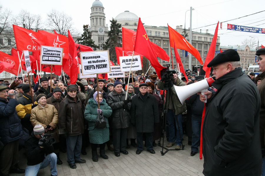 Выступая перед собравшимися, лидер РКРП Виктор ТЮЛЬКИН призвал все левые силы объединиться и действовать более активно, в том числе и в борьбе за честные выборы. Секретарь МГК КПРФ, депутат Московской городской думы Владимир ЛАКЕЕВ напомнил, что грядет президентская компания, которая также будет иметь огромное значение. А в Москве предстоят выборы депутатов муниципальных собраний. Коммунисты обязаны значительно повысить свои представительство в этих органах власти. Первый секретарь Северного окружного Комитета КПРФ, депутат Московской городской думы Сергей НИКИТИН выразил уверенность, что народ все равно прозреет. Ни одной из проблем, которые стоят перед страной, нынешняя власть решить не сможет. Лидер АКМ Сергей УДАЛЬЦОВ обратился с вопросом к председателю Центризбиркома Владимиру Чурову: почему тот все еще с бородой? Ведь обещал сбрить ее, если на выборах будет зарегистрировано хотя бы одно нарушение. Сегодня таких документально подтвержденных нарушений уже многие тысячи.