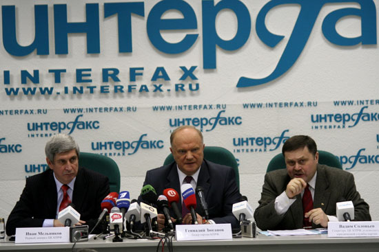 7 декабря в информационном агентстве «Интерфакс» состоялась пресс-конференция, в которой приняли участие Председатель ЦК КПРФ Г.А. Зюганов, первый заместитель Председателя ЦК КПРФ И.И. Мельников и секретарь ЦК КПРФ, Руководитель Юридической службы КПРФ В.Г. Соловьев.
