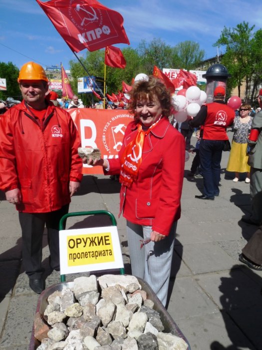 2012-05-01 15:54 Пресс-служба Саратовского обкома КПРФ Алимова Ольга Николаевна В рамках Всероссийской акции, посвящённой празднованию Первомая, в г. Саратове и во всех районных центрах области прошли митинги, торжественные собрания и праздничные шествия граждан. Предварительно было изготовлено и распространено более 50000 листовок-приглашений, около 40000 газет «Коммунист – век ХХ-ХХI», были даны объявления по радио "Эхо Москвы", радио "Дача", радио "Маяк". В течение предпраздничной недели по улицам Саратова ездила автомашина с громкоговорителями, приглашая саратовцев принять участие в праздновании Первомая. 1 мая в 10.30 в г.Саратове на площади возле цирка по призыву областного комитета КПРФ собрались участники первомайской акции протеста из центральных районов города. Сюда же вскоре подошли многочисленные колонны из Октябрьского и Волжского районов г.Саратова. После формирования общегородской колонны участники праздничного шествия, возглавляемые группой комсомольцев и знаменосцами с огромным красным знаменем длиной 26 метров, расцвеченные сплошным кумачом знамён, флагов и транспарантов КПРФ, с красными нагрудными бантами, в сопровождении автомашины, транслирующей патриотические песни, прошли под первомайские речевки и лозунги по центральным улицам города до пл. Революции, где и состоялся общегородской митинг протеста. Впереди колонны шел рабочий с тележкой, в которой вез булыжники – оружие пролетариата. Митинг был открыт гимном Советского Союза. Жестким и запоминающимся было выступление первого секретаря обкома КПРФ, депутата Госдумы О.Н. Алимовой, которая убедительно и беспощадно разоблачила предательскую политику федеральной и местной власти по отношению к народу, проводником которой являются партия «Единая Россия. Экономический, социальный и оборонный потенциал России продолжает стремительно разрушаться. Деградируют промышленность, сельское хозяйство, наука. Вся ответственность за это в первую очередь лежит лично на политическом тандеме Путин-Медведев, фракции «Единой России» в Госдуме РФ. Лозунг «Мир! Труд! Май!» сменился на лозунг «Миф, трупы, рай для кучки ограниченных людей». Несмотря на ежедневные публичные заверения Президента, Председателя Правительства РФ, что наша страна успешно борется с мировым кризисом и даже «Весь мир нам завидует…», а Стабилизационный фонд смягчает удары экономического кризиса, на деле все не так прекрасно. Падает промышленное производство, растёт инфляция, снижается заработная плата. Резко возросла численность безработных. В Саратове многие предприятия продолжают сокращать рабочую неделю, растет задолженность по заработной плате, продолжается рост стоимости лекарств, основных продуктов питания. Резко возросла арендная плата и земельный налог на землю, включая земли дачных участков, под гаражами, рынками, предприятиями. Власть в центре и на местах по мере нарастания кризисных процессов в российской экономике тяжкое их бремя все больше перекладывает на плечи трудового народа, а олигархам предоставляет многочисленные льготы и преференции. Ветераны партии: В.А Макаров, С.Н. Семенов и молодой коммунист Е.В. Барцева возложили цветы к памятнику В.И. Ленину. На митинге выступили секретарь обкома КПРФ, депутат Балаковского городского совета депутатов А.Ю. Анидалов, секретарь обкома 