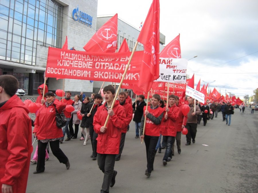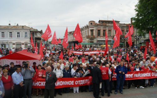 2012-05-01 17:36 Пресс-служба Курского ОК КПРФ История праздника 1 Мая как Дня солидарности трудящихся начинается с июля 1889 года. Тогда Конгресс II Интернационала принял судьбоносное решение о ежегодном праздновании “всем мировым пролетариатом” этого священного дня в память о героической борьбе американских рабочих в Чикаго против капиталистов и эксплуататоров. На территории Российской империи впервые отметили 1 Мая в 1890 году в Варшаве. В следующем, 1891 году, празднование состоялось уже в столице Российской империи – в Санкт-Петербурге. В советское время 1 Мая стал государственным праздником - Днем солидарности трудящихся. Пришедшие к власти “демократы” деполитизировали все, а майские праздники расценивают как возможность вскопать огороды, посадить картошку. Но при этом не забывают обязать всех, кто состоит на службе, прийти на демонстрацию и “гнобят” тех, кто, увлекшись огородом, не приходит. Страны Восточной Европы, вступившие в EC и НАТО, стараются о Первомае не вспоминать. В странах СНГ дела обстоят несколько иначе. В Казахстане 1 Мая празднуется как День единства народов. На Украине и в Белоруссии проводят демонстрации. 1 Мая состоялась традиционная демонстрация трудящихся и в Курске, а также во многих районах области. Это не та демонстрация, где идут одни чиновники и руководители, демонстрируя не политическую зрелость, а дороговизну нарядов. Наша демонстрация началась в 12 часов 30 минут и собрала около 2 тысяч курян - всех, кто не доволен действиями власти, кто готов бороться за свои права. Конечно, логичнее было бы, если бы в этот день с коммунистами были профсоюзы. Но они угодливо все эти годы служат “демократам”. И не важно, что в их рядах практически полностью отсутствует рабочий класс. Все эти годы его интересы они и не собирались защищать. А вот интересы чиновников, с коими они сливаются в единых рядах вот уже 20 лет, они защищают, подчас не щадя себя. Зато с нами лево-патриотические организации – Ленинский комсомол, Курский областной женсовет “Надежда России”, Союз советских офицеров, Союз малых предпринимателей, другие союзники и сторонники. Ленин учил, что, борясь за политическую власть, трудящиеся получают от капиталистов значительно больше того, что достигается экономической борьбой. Это доказали события 1917 года и почти 90-летняя история СССР. Наследница КПСС - КПРФ четко и последовательно борется за интересы рабочего класса России. Шествие и митинг КПРФ 1 Мая отдельно от чиновничьих рядов – это демонстрация решимости Компартии, поддерживающих ее политических и общественных организаций, профсоюзов бороться за победу в решении коренных проблем народа страны, за возвращение к социализму. После демонстрации у памятника В.И. Ленину состоялся митинг, на котором выступили секретари ОК КПРФ Н.Н. Иванов, Б.П. Гоголев, А.Н. Анпилов, А.Н. Бобовников и секретарь Ленинского РК КПРФ А.Ю. Клюев. На митинге принята общая резолюция о первомайской солидарности трудящихся и специальная резолюция “Нет НАТО на русской земле!”. К памятнику В.И. Ленину были возложены цветы. Праздничные мероприятия состоялись также в городах Железногорске, Курчатове, Льгове, Щиграх и других районах области.