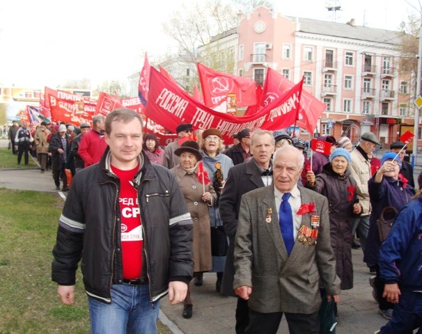 2012-05-01 21:28 Пресс-служба Краснодарского крайкома КПРФ Осадчий Николай Иванович В Краснодаре состоялась массово-политическая акция, посвященная Дню Международной солидарности трудящихся. Демонстрация и митинг под красными знаменами были организованы краевым и городским комитетами КПРФ при поддержке Союза Советских офицеров Кубани и регионального отделения Ленинского комсомола. Красная колонна двинулась по центральной улице города после того, как завершились официальные мероприятия партии власти вместе с шмаковскими профсоюзами. Поэтому на тротуарах было многолюдно. Тысячи людей на всем протяжении Красной приветствовали красную демонстрацию, фотографировали и снимали на видео. Колонну открывали офицеры-знаменосцы и комсомольцы с большим алым полотнищем с изображением герба СССР. Головной лозунг-растяжку «Да здравствует День Международной солидарности трудящихся» по Красной несли лидер коммунистов Кубани, руководитель фракции КПРФ Законодательного Собрания края Н.И. Осадчий, депутат Госдумы, член ЦК КПРФ К.В. Ширшов, секретари краевого Комитета Е.В. Ращепкин, А.И. Нагнибеда и П.В. Соколенко, председатель Союза Советских офицеров, генерал-майор А.И. Топчий, первый секретарь Краснодарского горкома партии И.Н. Чуев, секретари горкома КПРФ С.К. Лузинов и А.И. Мезенцев, первый секретарь краевого Комитета ЛКСМ И.А. Жилищиков, члены Бюро крайкома КПРФ А.Н.Тренин, Д.В. Коломиец, С.С. Яковлев, молодые активисты. Во время движения колонны играл духовой оркестр, через мегафон звучали лозунги протеста против политики правительства министров-капиталистов и фальсификации выборов, против присутствия НАТО на российской земле, в поддержку идей социализма и народовластия. Колонну украшали портреты Ленина и Сталина, транспаранты «Нет НАТО в России», «Как вам живется при капитализме?», «Обуздать тарифы ЖКХ» и другие Пройдя по Красной, колонна вблизи здания Законодательного Собрания свернула на улицу Постовую. Здесь, на ступенях мемориала, посвященного воинам-освободителям Краснодара от немецко-фашистских захватчиков, был проведен митинг. Его открыл первый секретарь Краснодарского горкома КПРФ И.Н. Чуев. После исполнения Государственного гимна слово было предоставлено первому секретарю краевого Комитета КПРФ, руководителю фракции коммунистов кубанского парламента Н.И. Осадчему. Поздравив участников акции с праздником, лидер коммунистов края остановился на экономических проблемах развития России. Он подчеркнул, что слова правителей о подъеме и процветании страны не имеют ничего общего с реальностью. Ведь за прошлый год из России вывезено 84 миллиарда долларов, а капитал не может бежать оттуда, где есть экономический рост и перспектива. В текущем году эти тенденции продолжаются: за первый квартал за рубеж «утекло» более 30 миллиардов. Россия за 10 лет ельцинских реформ и за 12 лет путинского правления так и не вышла на уровень 1990 года. Одержав на выборах «чуррову победу», партия власти не в состоянии решить проблем, стоящих перед обществом. Противоречия между трудом и капиталом, между несколькими процентами сверхбогатых семей и остальной частью населения будут нарастать. В этих условиях, – сказал Н.И. Осадчий – наша задача состоит в том, чтобы сплачивать, объединять все силы на платформе социализма, народовластия и социальной справ