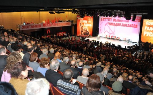 2012-01-14 15:59 Пресс-служба ЦК КПРФ. Алексей Брагин. Фото Сергея Сергеева 14 января 2012 года в Орловской области стартовала выборная кампания кандидата в Президенты РФ от КПРФ и народно-патриотических сил Г.А. Зюганова. Это мероприятие уже назвали русским стартом, потом что оно проходит в центральной России, в исконно-русских землях, на малой Родине нашего кандидата. Рано утром лидер российских коммунистов прибыл на железнодорожный вокзал города Орла, где его в товарищеской атмосфере встретили орловские коммунисты во главе с первым секретарем Орловского обкома КПРФ В.Н. Иконниковым. Вместе с Г.А. Зюгановым в город Орел приехала группа секретарей ЦК КПРФ и депутатов Государственной Думы из фракции КПРФ. Это Ю.В. Афонин, Д.Г. Новиков, К.К. Тайсаев, В.П. Комоедов, А.Е. Локоть, С.П. Обухов, А.П. Тарнаев, В.П. Пешков и другие товарищи. Вначале состоялась встреча Г.А. Зюганова с губернатором и председателем правительства Орловской области А.П. Козловым. На ней обсудили общее политическое и экономическое положение в стране и Орловской области. Г.А. Зюганов вручил А.П. Козлову памятную медаль ЦК КПРФ «300 лет со дня рождения М.В. Ломоносова». Затем Г.А. Зюганов возложил цветы к памятнику В.И. Ленину. Пресс-конференция лидера российских коммунистов Г.А. Зюганова вызвала повышенный интерес не только местных журналистов, но и представителей центральных телеканалов. Г.А. Зюганов в тезисах изложил свою предвыборную программу. Он считает, что на прошедших думских выборах народ выразил полное недоверие власти и проводимой ею политике. Население страны ждет перемен, настаивает на проведении честных выборов и обязательного участия в дебатах кандидатов в Президенты. Что касается приписки и воровства голосов, то Г.А. Зюганов считает это преступлением без срока давности. По его мнению, надо ужесточить наказание за это преступление: оно должно караться тюрьмой сроком от 15 до 20 лет с конфискацией имущества. Г.А. Зюганов заявил, что в случае его победы в стране будет создано коалиционное правительство, которое будет проводить в стране левоцентристскую политику. В настоящее время в большом актовом зале «Грин центра» проводится встреча Г.А. Зюганова с избирателями. Люди встретили Г.А. Зюганова перед входом, скандируя лозунг «Зюганов – наш Президент!». В двухтысячном зале аншлаг, многие люди стоят в фойе, через акустические установки слушают речь лидера КПРФ и народно-патриотических сил. http://kprf.ru/rus_soc/101317.html