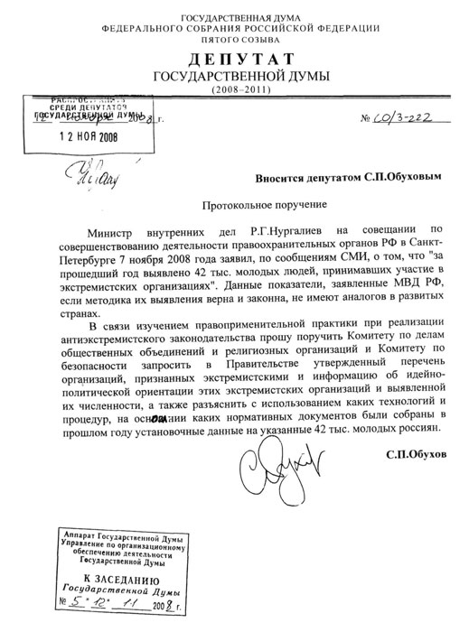 Депутат-коммунист Сергей Обухов на пленарном заседании Госдумы 12 ноября поднял вопрос об участии молодежи в экстремистских организациях.