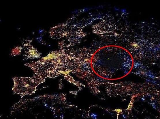 Офигеть!!!!! Надеюсь, все поняли, что это за черная дыра в центре снимка ночной Европы, сделанного со спутника?