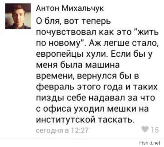 - Потому что Крым - это единственное место, где действительно есть российская армия. Главная цель повышения стоимости проезда в Киеве, чтобы народ не смог приехать на Майдан. — Когда Украина станет членом ЕС? — После Турции. — А когда станет Турция? — Никогда. |