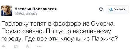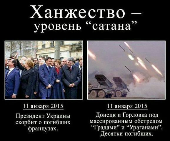 13 января 2015, 18:10 http://pravdoryb.info/molniya-donetskiy-aeroport-polnostyu-pod-kontrolem-armii-novorossii.html Французская карикатура на Порошенко. http://prntscr.com/5rnm66 Перевод: "Я сбил рейс МН17. Я убил 4634 мирных жителя на Украине... Но сегодня вечером в Париже "Я Шарли". |