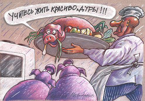 А модераторов я призываю почитать классиков МЛФ, и сделать соответствующие выводы по поводу накрученных рейтингов. Хотя в случае с кикиморой делаю скидку на то, что она в основном не свои мысли высказывАет, а пиарит мысли политтехнологов, которые в основном работают за деньги, а кто им деньги платит? У кого сейчас лишние , или не лишние, но на это есть деньги? Правильно, у тех, кто ограбил народ и возвращать награбленное не хочет. Так что делаю скидку на так сказать отсутствие возможности самостоятельно мыслить. А впрочем мне как бы это помягче, всё равно, чего там модераторы посчитают, по крайней мере по-поводу меня лично, я здесь не для того, чтобы кому-то нравиться, а скорее уж для того, чтобы ускорить возвращение награбленного народу, в том числе себе.