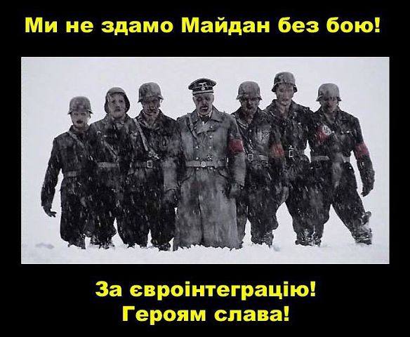 На майдане оккупанты, а не народ! Где вы видели народ, кидающий в милицию бутылки с зажигательной смесью? Бьют стёкла, разбирают брусчатку и всё за деньги. А если их так? Беркут сможет и лучше, да не разрешают. Теперь посмотрите сами, кого больше раненых и сожжённых? Ваших всего человек 6 пострадало, а милиция более сотни, так кто кого бьёт? А противостоять режиму надо через выборы, мирным путём. Ваш майдан проплачен Западом! И не надо утверждать обратное. На какие шиши вас там кормят, сигареты дают? Кто учил боевиков военному делу? Кличко ваш, западенец, живёт в Германии, так же и другие из Галиции. Даже в советские времена, они были чужды Украине!