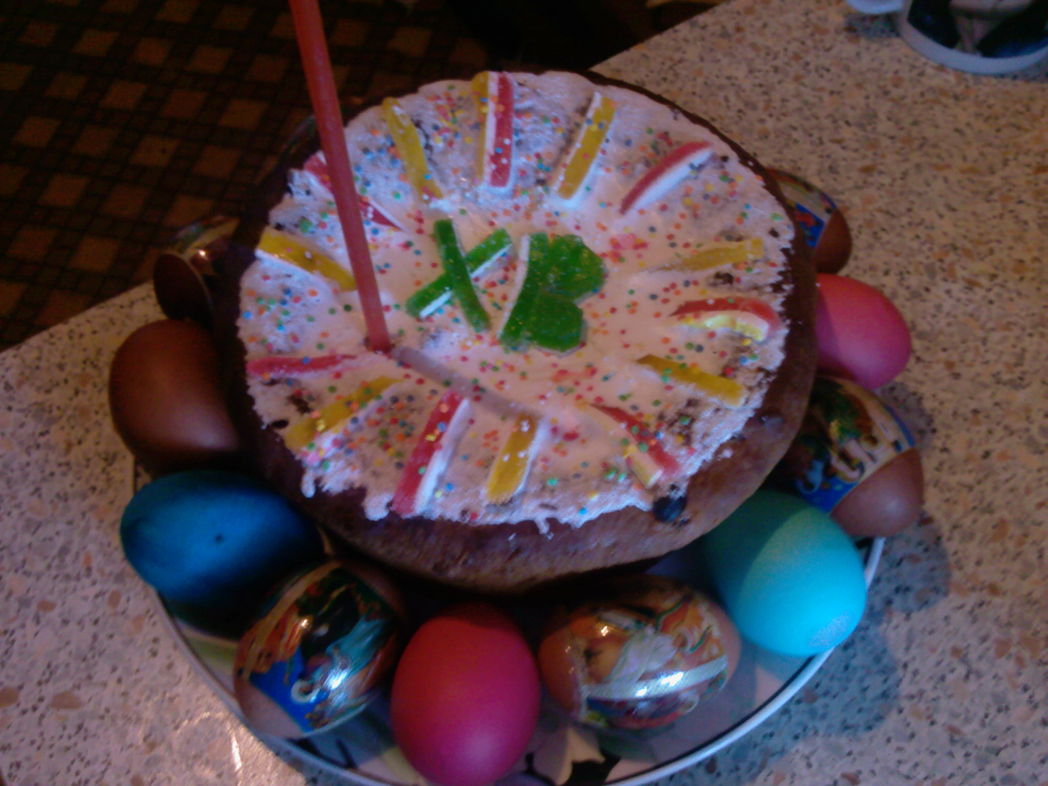 , а мне дедушка не позволит так украсить, украсила только один чтобы хоть не стыдно было в храм отнести, но он уже сказал что есть его не будет, еще два пришлось оставить без украшений![]() А яйца мы уже в четверг покрасили, правда не очень получились из-за того что очень мелкие.